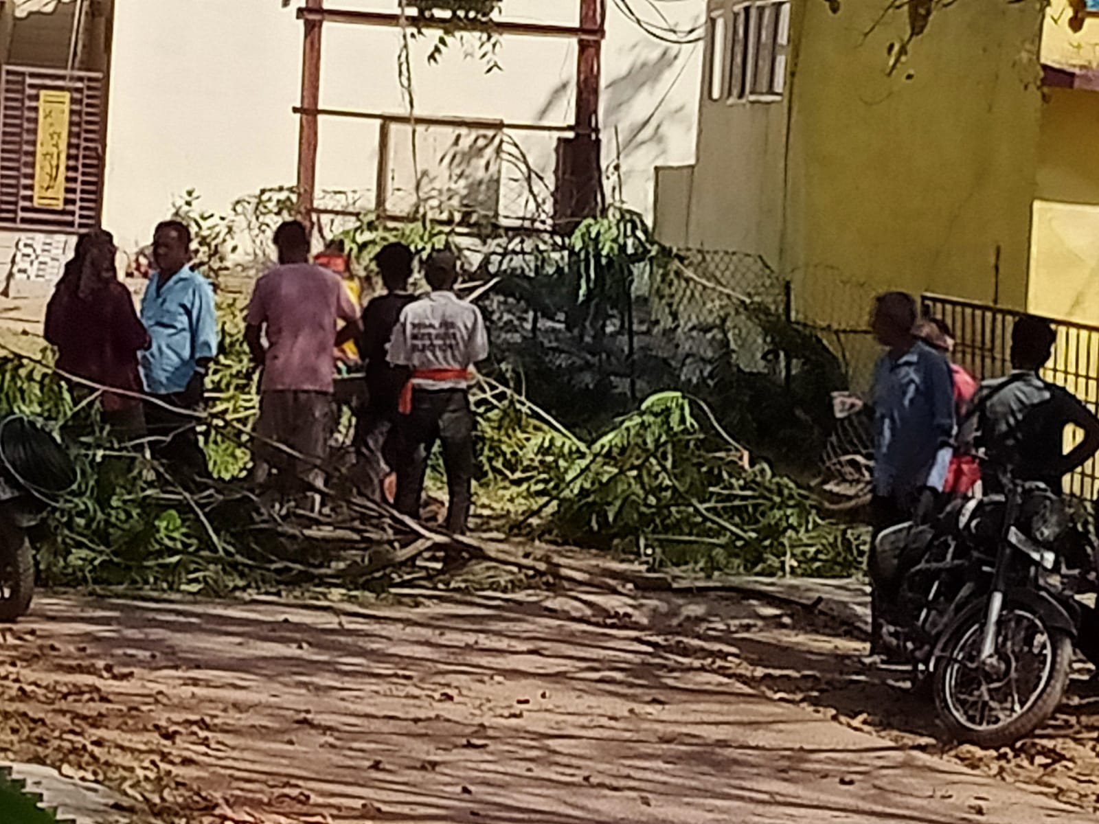 स्थानीय निवासियों ने की लिखित शिकायत दर्ज । मंदिर समितिके लोगों द्वारा बिना अनुमति के काटे गए पेड़ ।