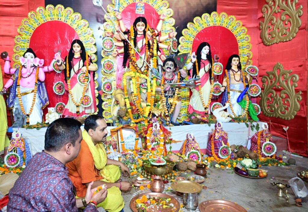 चैत्र नवरात्रि के पावन पर्व पर भिलाई नगर कालीबाड़ी सेक्टर 6 में अयोजित बासन्ती दुर्गा पूजा में वैशाली नगर विधायक रिकेश सेन शामिल हुए, इस दौरान विधायक रिकेश सेन ने बासन्ती माँ दुर्गा की प्रतिमा के सामने आराधना कर प्रदेश के सुख समृद्धि की कामना की गई । इस मौके पर पंडित मानस मिश्र ने मंत्रोचार के साथ विधायक रिकेश सेन के हाथों से पूजा अर्चना कराया और शांति जल अर्पित की गई।विधायक रिकेश सेन ने बताया कि भिलाई नगर कालीबाड़ी सेक्टर 6 का मंदिर शक्तिपीठ का स्थल है और मैं बचपन से प्रत्येक कार्यक्रमों में शामिल हुआ हूं, जो मेरे लिए सौभाग्य का विषय है। सेक्टर 6 काली मंदिर के शक्तिपीठ में भक्तिभाव का वातावरण हमेशा बना रहता है, जिससे हमको समाजिक व अपने व्यक्तिगत जीवन में सकारात्मक भाव का अनुभव होता है, विधायक रिकेश सेन ने कहा माँ दुर्गा की कृपा से सभी प्रफुल्लित रहे ओर चैत्र नवरात्रि के इस पवित्र माह में सभी के लिये मंगलमय हों ।इस दौरान मंदिर समिति के सदस्यों द्वारा रिकेश सेन का स्वागत किया एवं वर्तमान में उनके द्वारा मंदिर के सामने में स्थित सांस्कृतिक कार्यक्रम स्थल में डोम सेट का कार्य को अपने माध्यम से स्वीकृति कराने के लिए आभार व्यक्त किया गया।