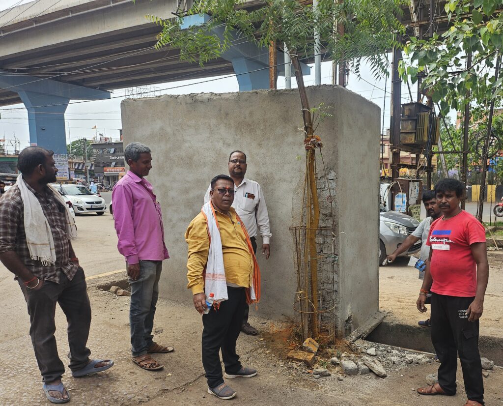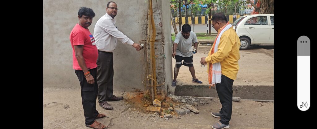 विश्व पर्यावरण दिवस के अवसर पर भिलाई वार्ड 38 रविशंकर शुक्ल मार्केट पावर हाउस में पर्यावरण प्रेमियों द्वारा पिछले साल लगाए गए पेड़ स्थल पर पेड़ को बचाने का संकल्प लिया गया तथा लगाए गए पेड़ स्थल के सामने सिवरेज नाली के ऊपर गलत तरीके से निगम द्वारा बनाए गए मूत्रालय के बाजू में उगे हुए नीम पेड़ को दूषित होने से बचाने का कार्य किया गया। सिवरेज नाली के ऊपर यूरिन मूत्रालय बनाकर खुले में पेशाब से बैक्टीरिया और अन्य सूक्ष्मजीवों मिट्टी में जाने से उगे हुए पेड़ अनुपयुक्त होने लगा था। एक साल पुरानी उगे हुए नीम पेड़ को अनुपयुक्त होने से रोकने के लिए सामाजिक कार्यकर्ता सुमन शील के उपस्थिति में वृक्ष प्रेमियों द्वारा स्थल पर सबसे पहले गंगा जल का छिड़काव कर शुद्धिकरण किया गया। शुद्धिकरण करने के पश्चात नीम पेड़ को बचाने के लिए धार्मिकता के अनुसार हल्दी जल से पेड़ को नहलाया गया और यूरिन पेड़ के जड़ में ना जा पाए उसे ध्यान में रखते हुए स्थान को ऊपर उठाते हुए ईट से घेराव किया गया।। चारों तरफ फैले गंदगी के कारण स्थल पर भनभनाती मक्खी एवं छोटे छोटे कीड़ों से छुटकारा पाने एवं दुर्गन्ध से बचने के लिए ब्लीचिंग पावडर का छिड़काव किया गया।