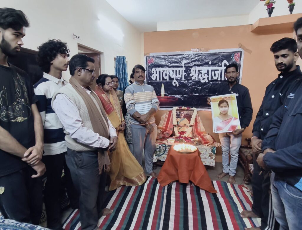 स्व. ईशा पाल को दी गई श्रद्धांजलि पिता ने कहा 1 साल बाद भी ईशा पाल को प्रताड़ित कर मारने वाले ससुराल वालों के खिलाफ नही हुई कोई कार्रवाई